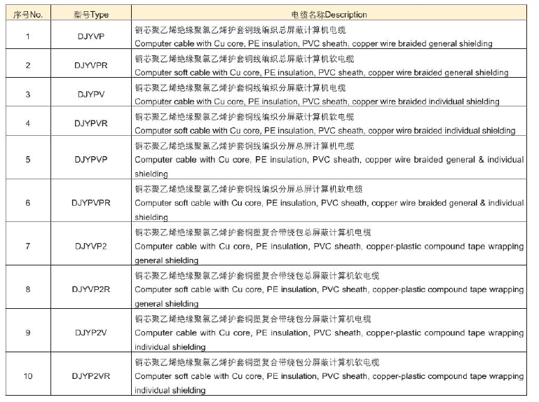 計算機(jī)及儀表用電纜 DJ
